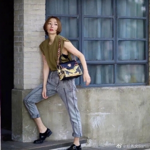 就拿针织背心来说,妹妹选择的是时下大热的Ralph Lauren小V领,从宽松版型不难猜测是男款,棒球帽点缀竟有点Tomboy Style的味道。